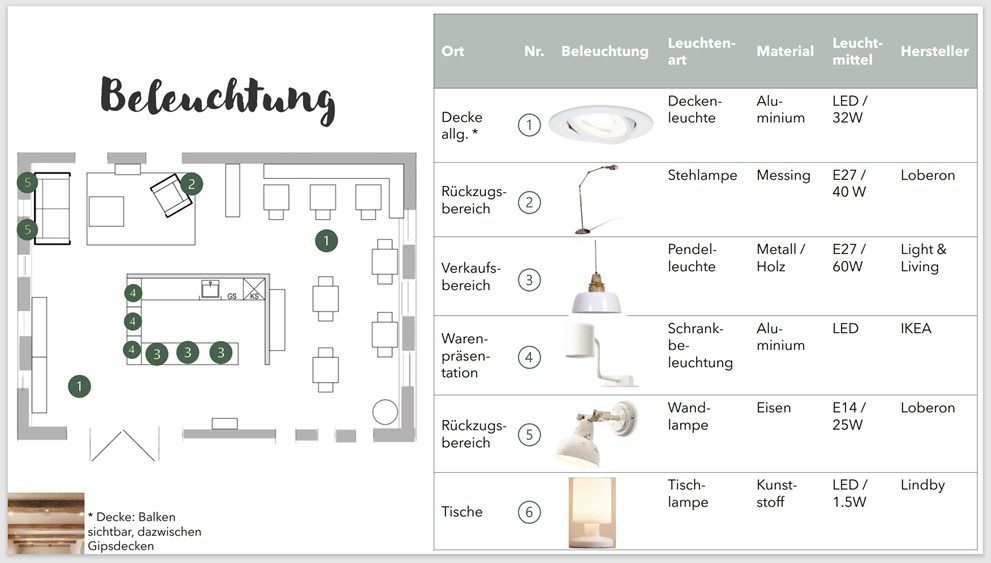 Einrichtungskonzept für einen Landhausladen mit integriertem Café